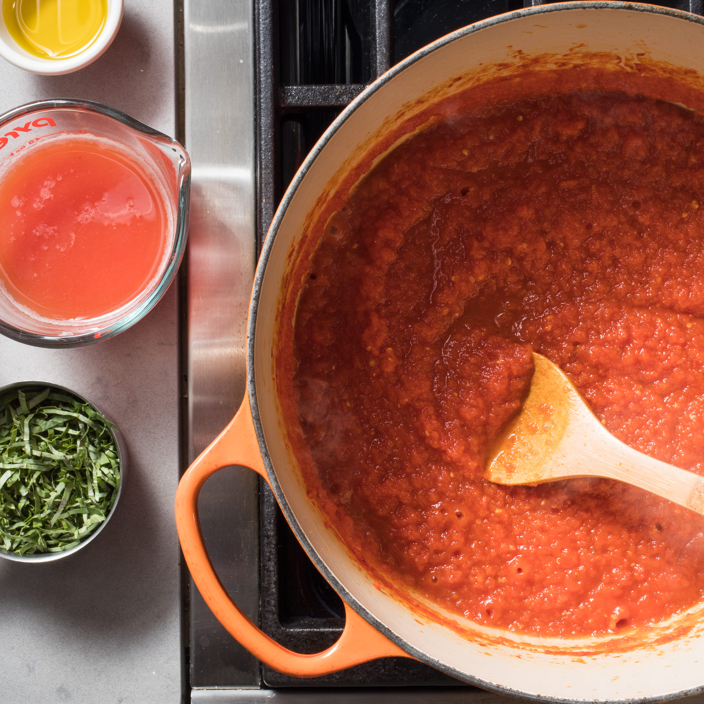 Homemade pizza sauce peeled tomatoes testkitchen. Some fresh basil if you have any and a pinch of crushed red pepper flakes if you like your sauce. To make things easier for you especially on pizza nights its best to freeze the sauce in a single pizza. Spread ½ heaping cup of the pizza sauce onto the dough top with desired toppings and bake for 10 to12 minutes in a 500F oven or until the crust is browned.