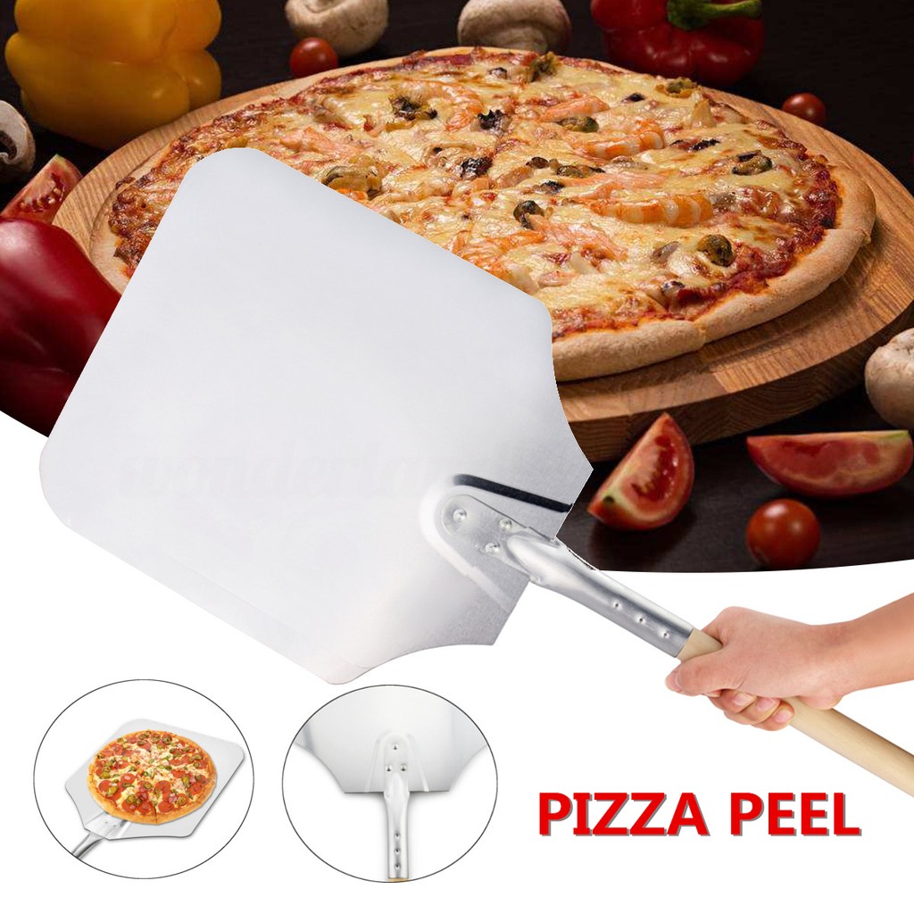 Amazon Com Aluminum Pizza Peel 12 X 14 Pizza Spatula Set With Foldable Long Wooden Handle Pizza Paddle Oven Accessories Of Convenient To Store Kitchen Dining