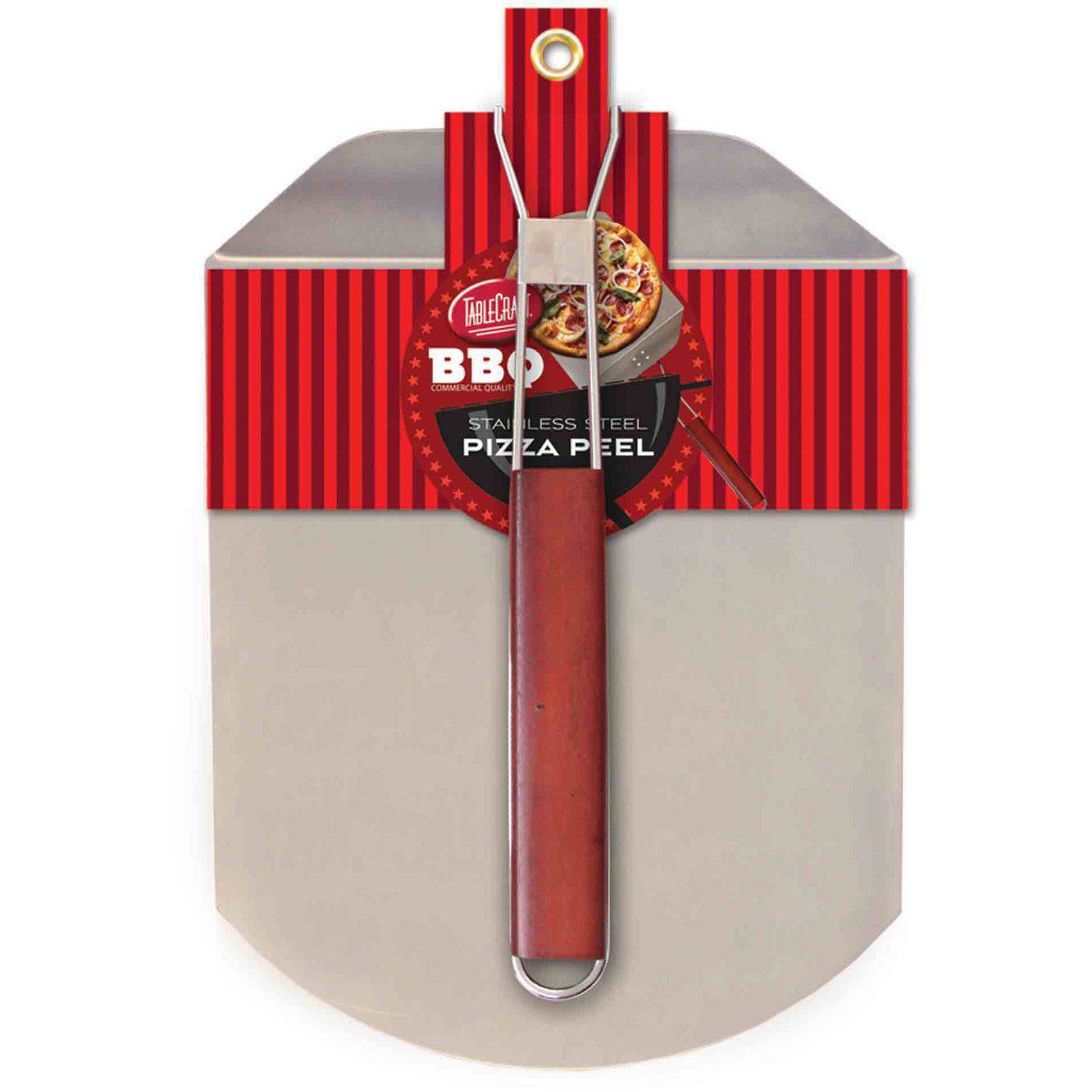 The handle is comfortable and even though this is more weighty than Id expected when snapped together it is helpful for using as a base to build a pizza placing it in the heat source and removing it then slipping the pizza onto a cutting board. When youre done with the pizza peel you can easily fold it away for simple storage or you can hang it from your grill hooks. TableCraft Pizza Peel with Wood Handle.