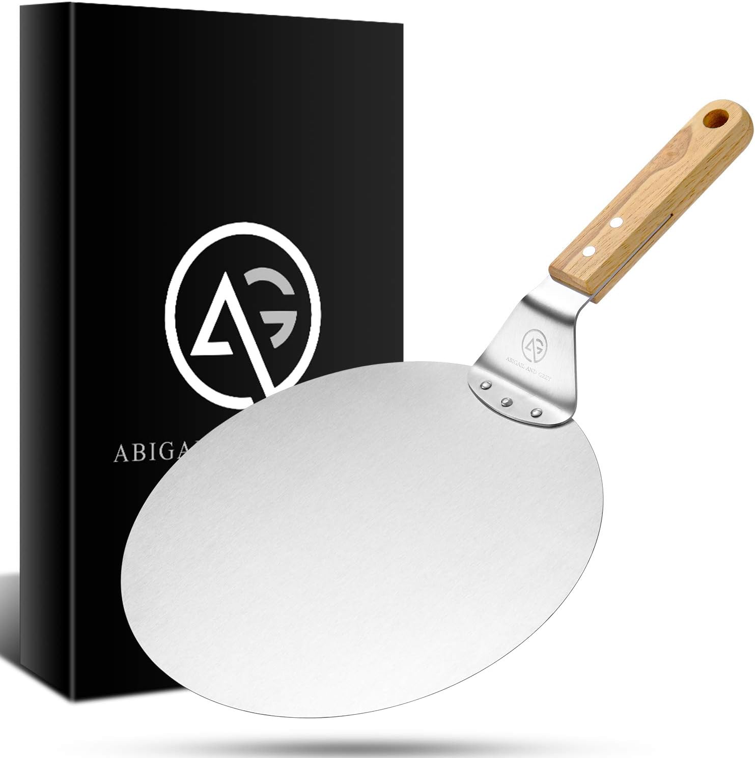 Amazon Com Metal Pizza Peel With Handle By Abigail And Grey Stainless Steel Pizza Paddle And Pizza Spatula For Baking Homemade Pizza And Bread Round 10 With Wood Handle Kitchen