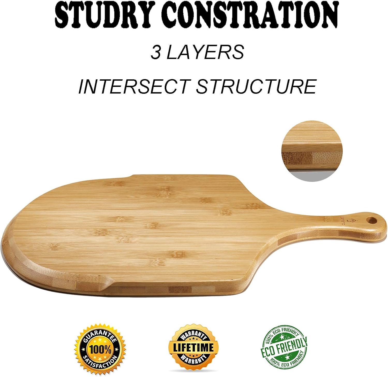 Amazon Com Befano Bamboo Pizza Peel 18 X 12 Inch 3 Layers Criss Cross Sturdy Structure Pizza Paddle Spatula Tools With Pizza Cutter For Grill Oven Cutting Kitchen Dining