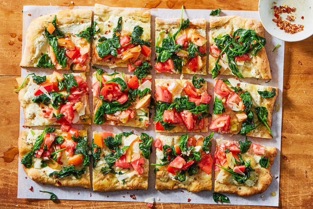 Three Cheese Pizza Florentine With Garlicky Spinach Tomatoes Marley Spoon